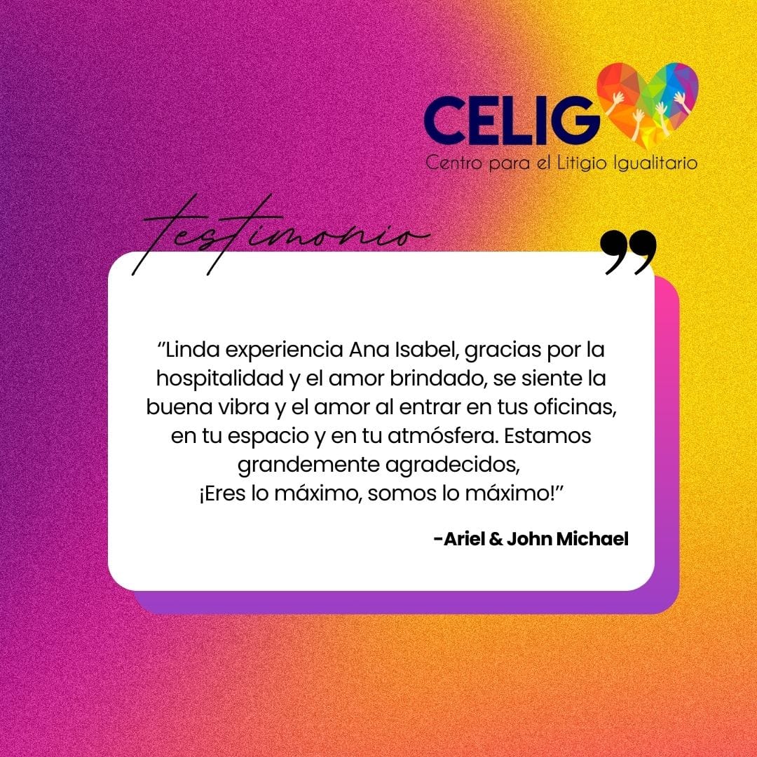 Gracias a CELIG y a Ana Isabel Sibaja por hacer de nuestra boda un momento tan especial. Su sensibilidad y comprensión del valor de este derecho hicieron la ceremonia aún más significativa.